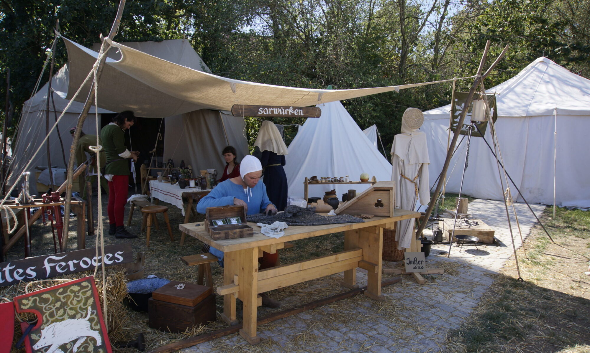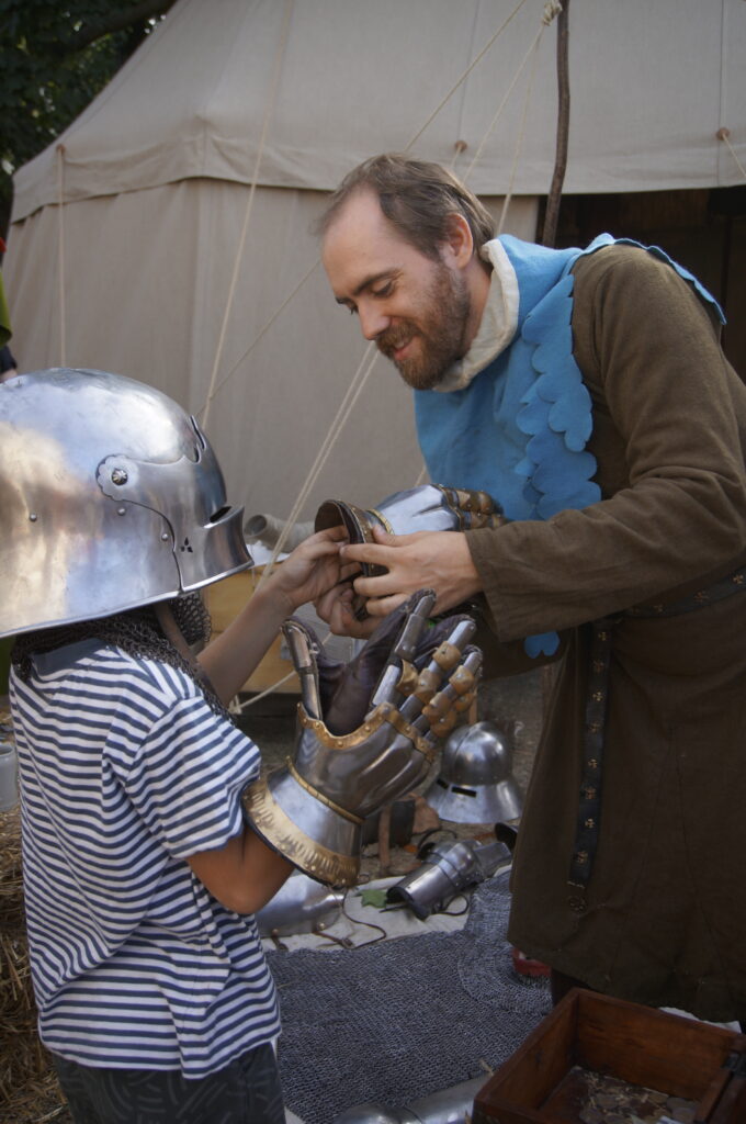Unser Profil ist vielfältig, unsere Stärken liegen in der Kulturvermittlung der mittelalterlichen Sachkultur. Außerdem führen wir Handwerk, Rüstzeug und Kampftechniken gerne vor.